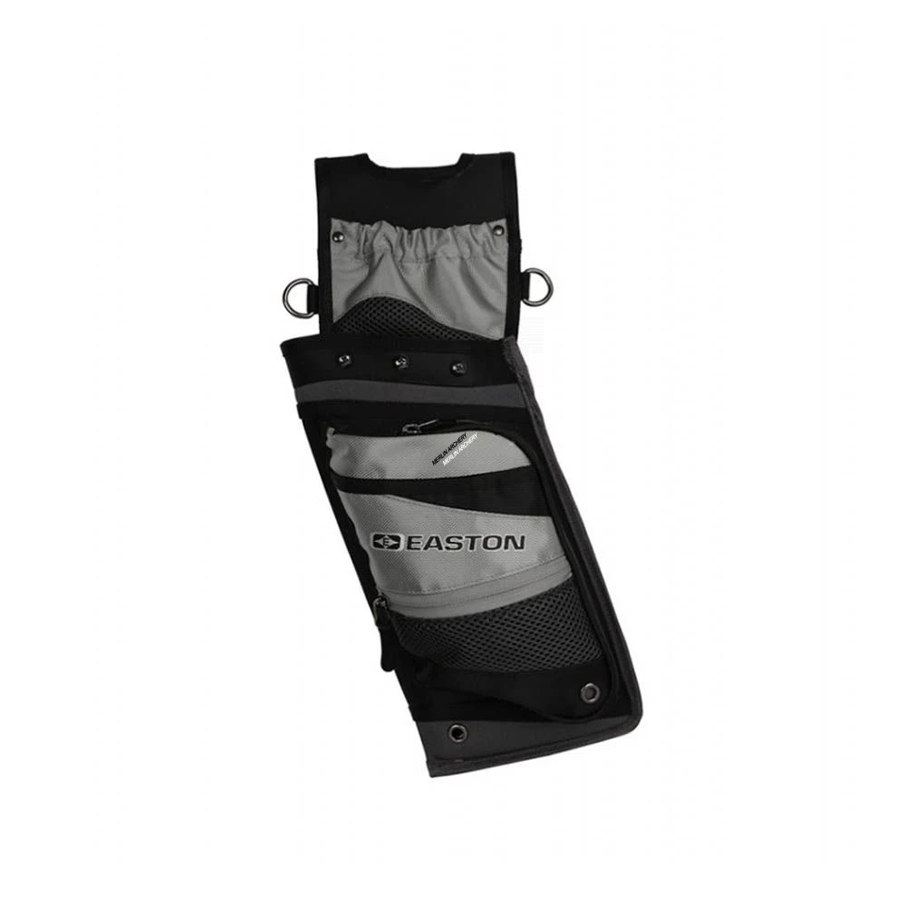 High-denier woven fabric construction with a semi-rigid rear-facing compression-moulded arrow body eliminates the need for separate arrow tubes.