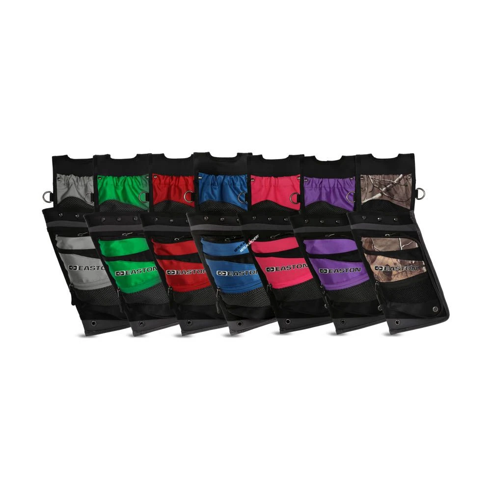 High-denier woven fabric construction with a semi-rigid rear-facing compression-moulded arrow body eliminates the need for separate arrow tubes.