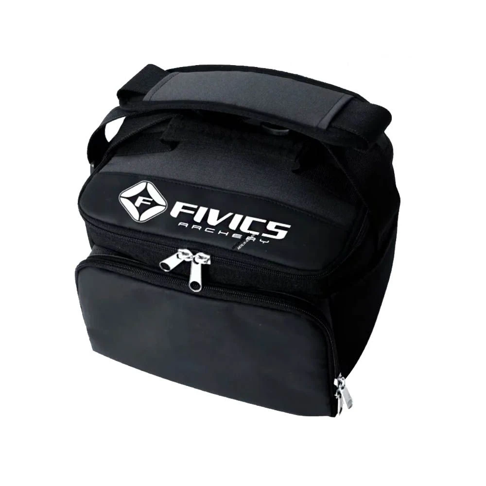 Soft padded case with easy carry strap containing clear plastic hard cases for storing small components and tools.